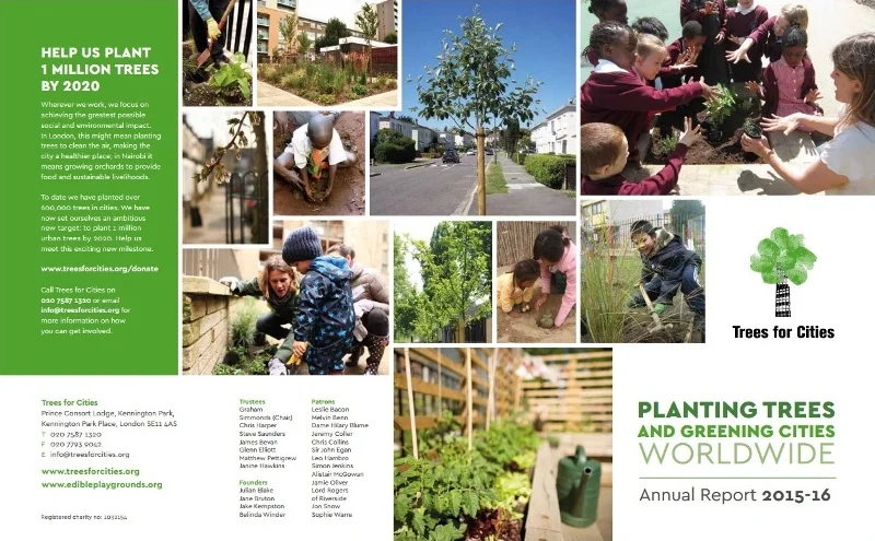 I edit the charity's annual review each year (2015 onwards). My past experience as a volunteer tree-planter with Trees for Cities came in handy! Click the image to see more.